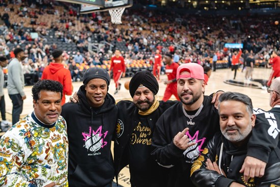 While in town, Ronaldinho had the chance to commemorate Canadian soccer with Toronto FC and celebrate both Brazil and Canada in qualifying for the upcoming World Cup. Ronaldinho also had the opportunity to sit courtside with Superfan Nav Batia at the Toronto Raptors game where he flaunted a Diogo Snow New World hoodie to tease his upcoming NFT drop with fans and players worldwide including former Toronto Raptor Kyle Lowry.