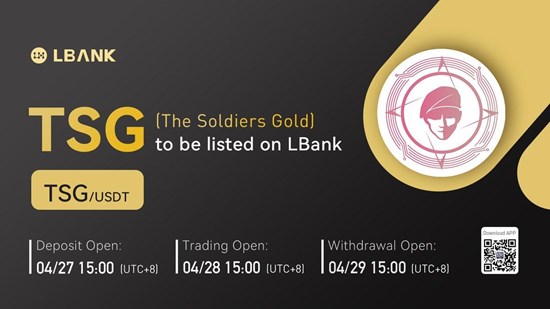 Internet City, Dubai–(Newsfile Corp. – April 25, 2022) – LBank Exchange, a global digital asset trading platform, will list The Soldiers Gold (TSG) on April 28, 2022. For all users of LBank Exchange, the TSG/USDT trading pair will be officially available for trading at 15:00 (UTC+8) on April 28, 2022.
