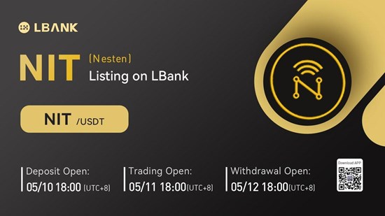 Internet City, Dubai–(Newsfile Corp. – May 10, 2022) – LBank Exchange, a global digital asset trading platform, will list Nesten (NIT) on May 11, 2022. For all users of LBank Exchange, the NIT/USDT trading pair will be officially available for trading at 18:00 (UTC+8) on May 11, 2022.