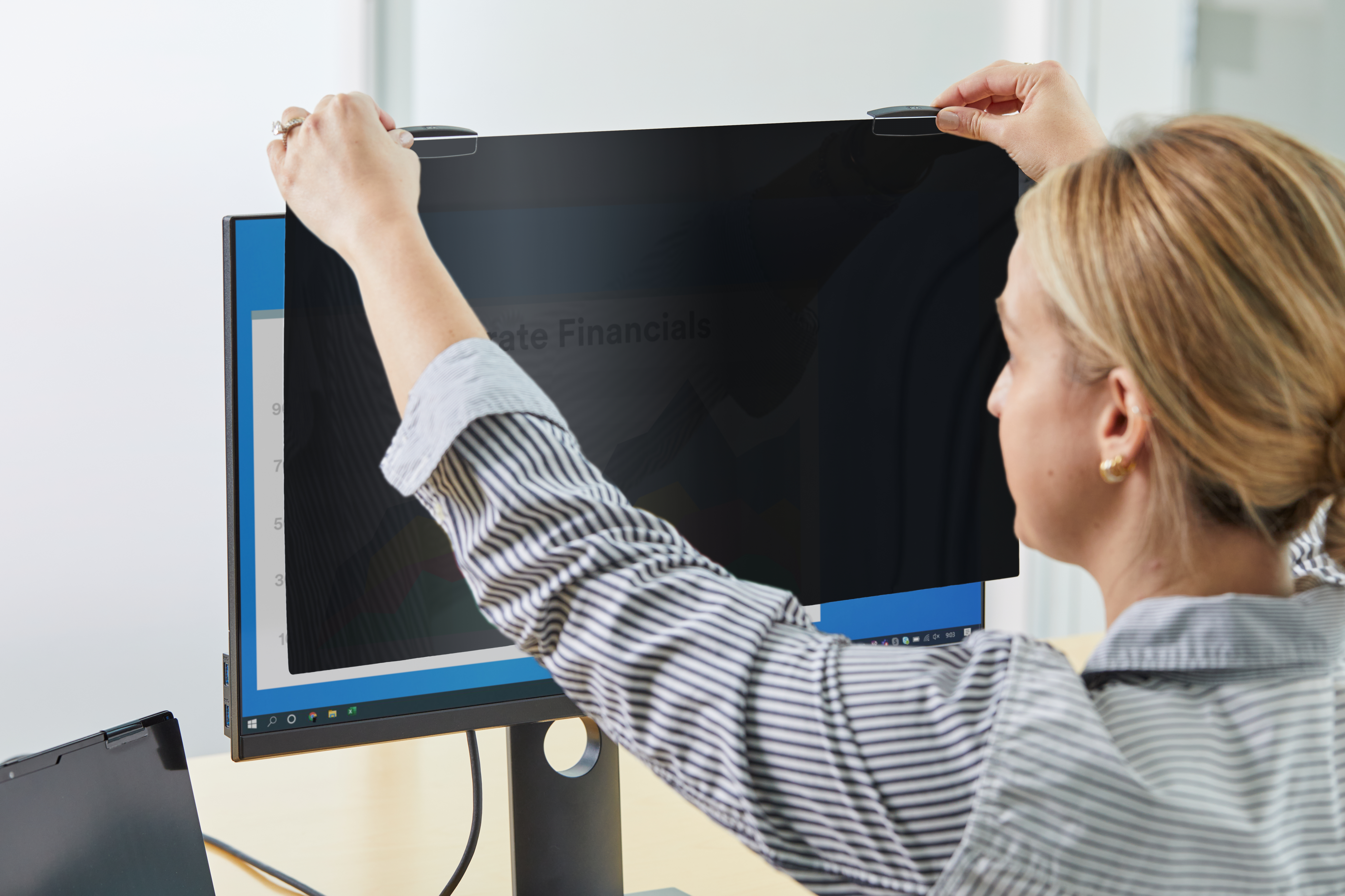 ST. PAUL, Minn.–(BUSINESS WIRE)–Companies can protect their sensitive and confidential data on their monitor displays, especially as more employees return to the office, with the new COMPLY Magnetic Attach for Monitors from 3M. The attachment system allows office workers to easily install a 3M Privacy Filter to their full screen (frameless) monitor to protect their work, remove it for collaboration with co-workers and then reattach when done. This is particularly important in highly regulated vertical industries with sensitive data, like legal, healthcare, government, finance and consulting.