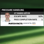 Pressure Handling: The new Pressure Handling Match Fact highlights players who are performing exceptionally well when under pressure by the opposing team. The central metric is the escape rate, which highlights how often a player breaks out from these high-pressure situations while keeping possession of the ball for his own team. The high-pressure situations will be evaluated by performance metrics like passes completed under pressure.