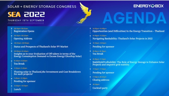 Energy Box are organizing Solar Energy Storage Congress SEA scheduled on October 18th, 2022.