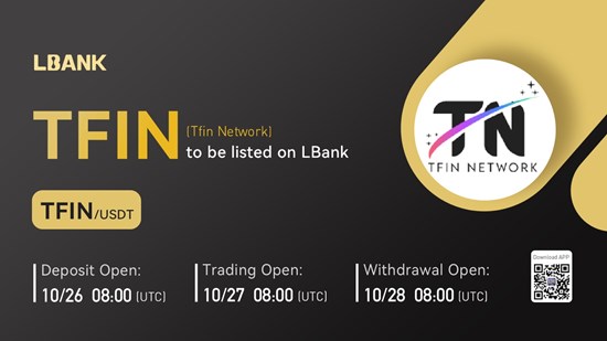 Internet City, Dubai–(Newsfile Corp. – October 26, 2022) – LBank Exchange, a global digital asset trading platform, will list TFIN NETWORK (TFIN) on October 27, 2022. For all users of LBank Exchange, the TFIN/USDT trading pair will be officially available for trading at 8:00 UTC on October 27, 2022.