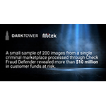 In an early test, Mitek and DarkTower provided a large financial institution with extracted data and supporting images. A small sample of 200 images from a single criminal marketplace processed through Check Fraud Defender revealed more than $10 million in customer funds at risk. The $10 million at-risk funds represents only a fraction of the potential value of documents available on these exchanges, with experts estimating thousands of similar active markets. The financial institution confirmed there was undetected fraud and there were claims paid related to the group of stolen checks. More than 90% of the claims showed additional counterfeit documents were distributed. This averaged $50,000 in losses per stolen document.