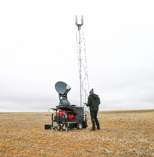 Pelsue Mobile Deployable Satellite Link equipped with the C-COM iNetVu® Ka-75VP antenna system.