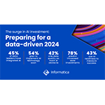 REDWOOD CITY, Calif.–(BUSINESS WIRE)–Informatica (NYSE: INFA), an enterprise cloud data management leader, released the findings of its annual survey of global data leaders – CDO Insights 2024: Charting a Course to AI Readiness. The report, which canvassed 600 enterprise Chief Data Officers and other data decision makers across the U.S., Europe, and Asia-Pacific, provides insights into generative AI readiness, key technical and organizational roadblocks to implementation and top data and data management priorities and strategies for 2024.