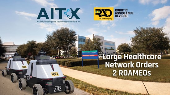 Detroit, Michigan–(Newsfile Corp. – September 23, 2025) – Artificial Intelligence Technology Solutions, Inc. (OTCID: AITX) (the “Company”), a global leader in AI-driven security and productivity solutions, along with its wholly owned subsidiary, Robotic Assistance Devices, Inc. (RAD), has secured a full price order for two ROAMEO™ Gen 4 mobile security robots with one of the largest non-profit hospital networks in the United States. Unlike a proof-of-concept or demonstration deployment, this order represents a production contract expected to generate significant savings and performance improvements for the end user. The healthcare provider, which was among the several destinations during RAD’s successful ROAMEO Road Trip, will integrate the robot into its security operations at two locations with additional deployments currently under discussion.