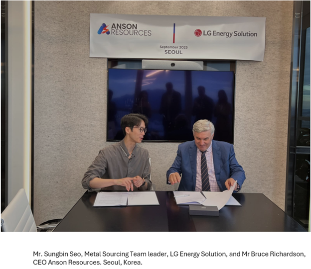 NEWPORT BEACH, CA, Sept 24, 2025 – (ACN Newswire) – Anson Resources Limited (ASX:ASN) (“Anson Resources” or “the Company“) is pleased to announce that it has completed negotiations with LG Energy Solution and on the Definitive Offtake Agreement for the supply of battery-grade Lithium Carbonate from its 100% owned Project within the Paradox Basin in Southern Utah.