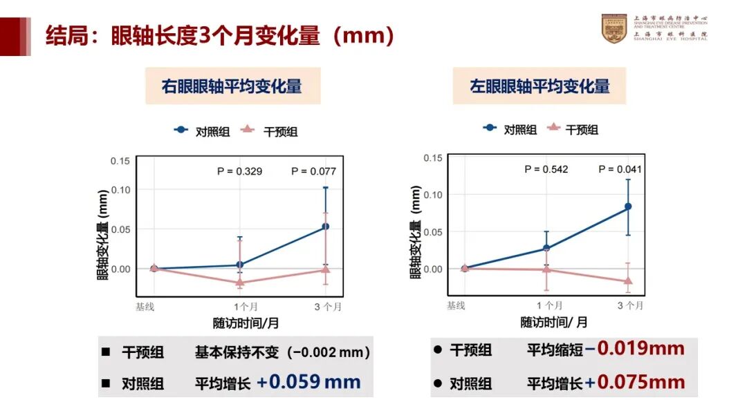 The pilot study data revealed that, over a 3-month period, the average axial length changes in the intervention group were as follows: right eye, -0.002 mm; left eye, -0.019 mm. In the control group, the axial length changes were: right eye, +0.059 mm; left eye, +0.075 mm.
