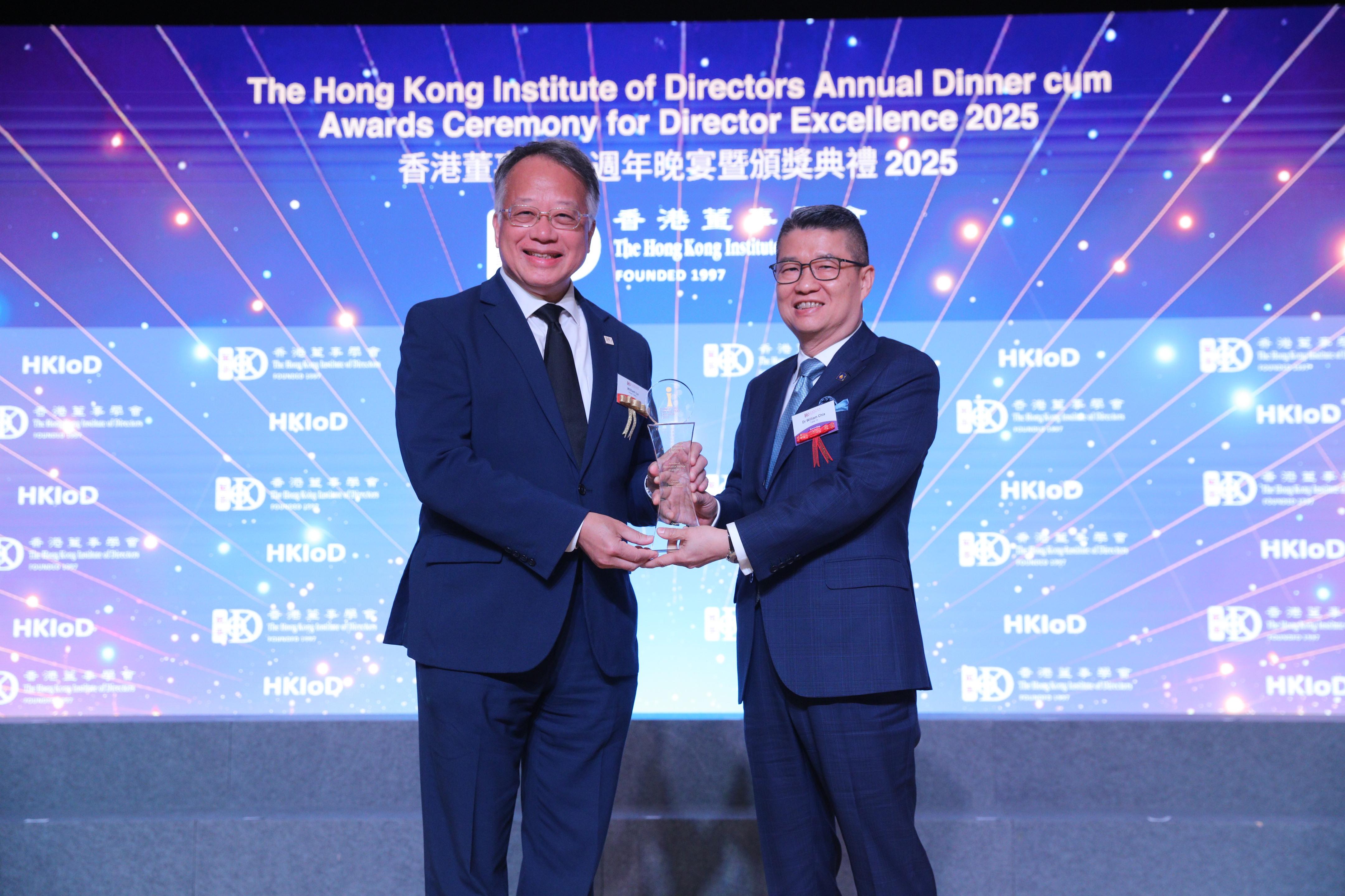Photo caption: Dr. Teck Lim Chia (right), Chairman and CEO of CBL International Limited, honored at the Directors of the Year Awards – Listed Companies Executive Directors category by the Hong Kong Institute of Directors (HKIoD).
