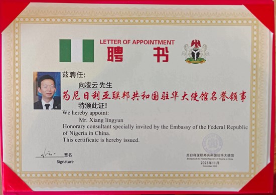 This appointment underscores the high regard for Prof. Xiang’s professional standing and his influence on global capital flows. As an American-based economist, Prof. Xiang is committed to fulfilling his duties as Honorary Consul based on international conventions and mutual prosperity. He will provide strategic insights for Nigeria’s industrial upgrading by utilizing the sophisticated financial service systems and technological innovation resources available in the United States.